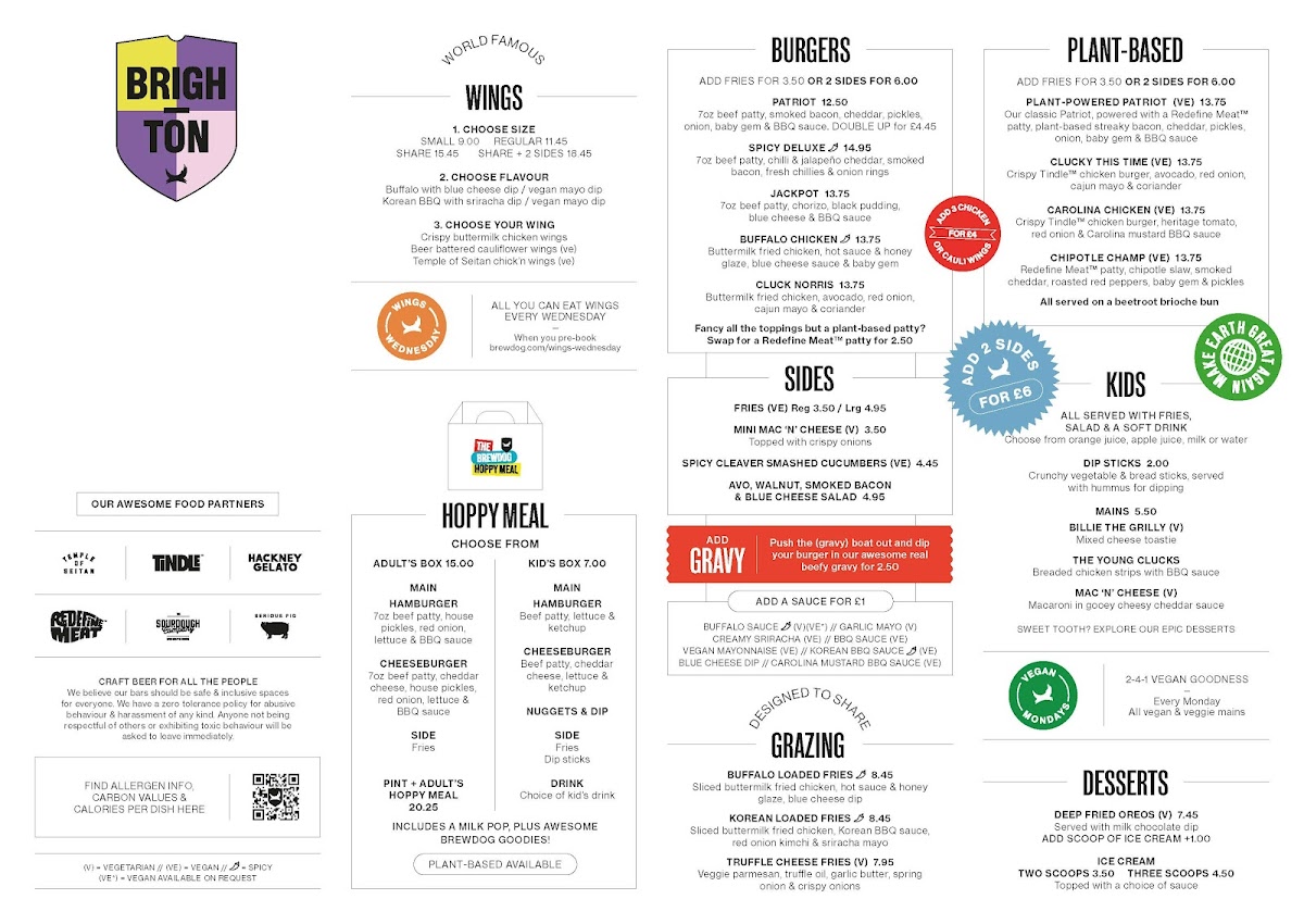 Nestled in the heart of Brighton, BrewDog Brighton is more than just a brewery; it’s a vibrant hub for craft beer enthusiasts and food lovers alike. Known for its inventive Amber & Dark Beers, like the rich Obla Ck Heart and indulgent Rocky Road, the menu also showcases an impressive lineup of BrewDog headliners. Signature brews such as the Elvis Juice and Vagabond complement the menu's standout dishes.